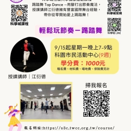 【輕鬆玩節奏-踢踏舞】 授課講師江衍德擁有豐富國際舞台經驗,零基礎也能輕鬆學,舞出健康與自信,帶你愛上踢踏舞! https://reurl.cc/oYybag 【長笛時光:輕鬆吹出悠揚笛聲】 跟著溫柔優雅的高寧兒老師,從零開始學會吹奏長笛,讓音樂成為生活的療癒時光。 https://reurl.cc/2QjApa   【生活日語會話入門/初級】 授課講師劉雅婷擁有豐富日語教學經驗,...