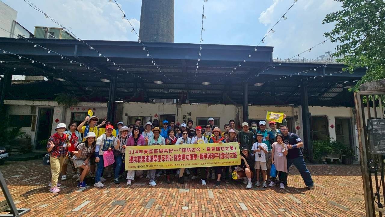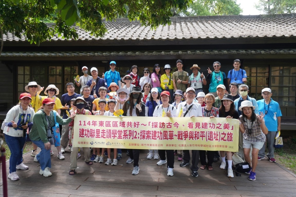 新竹市東區區公所於114年8月30日上午舉辦「114年社區營造計畫—建功聯里走讀學堂系列2:探索建功風華~戰爭與和平(遺址)之旅」,由文化部及新竹市文化局指導,東區區公所主辦,並由新竹市科學城社區大學承辦。活動吸引40位社區民眾參與,此次透過走讀方式實地探訪光明新村、基督教勝利堂、忠貞新村、天宏宮(蔣公廟)、寡婦樓、汀埔圳與大煙囪等珍貴遺址,深度認識新竹市的戰爭歷史與社區風貌。