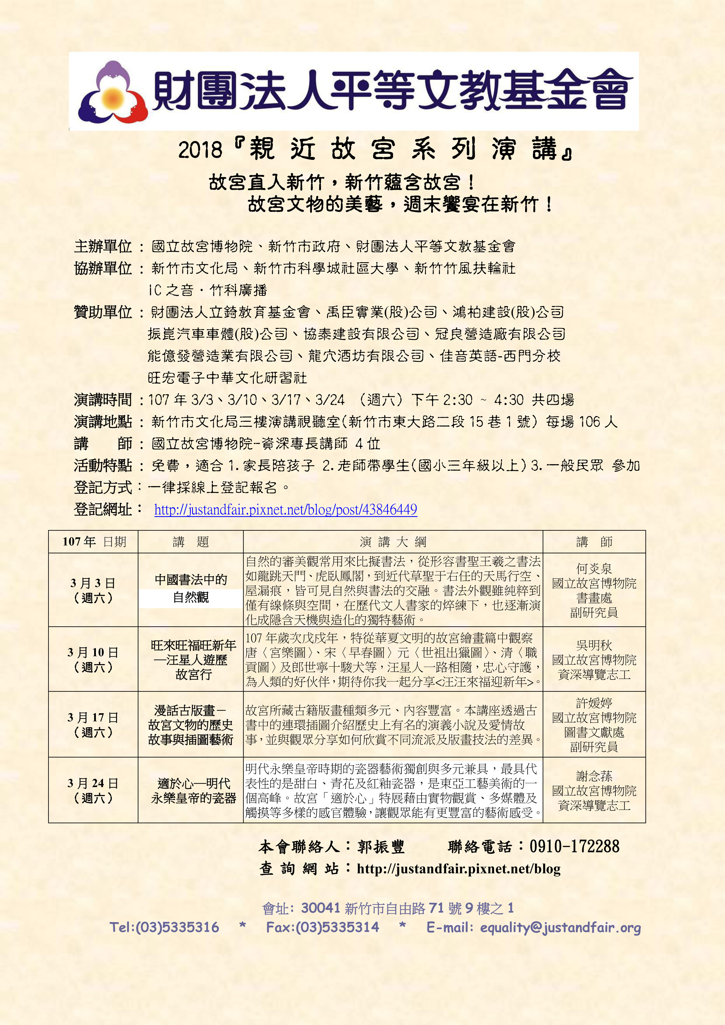 演講地點 : 新竹市文化局三樓演講視聽室(新竹市東大路二段15巷1號)。